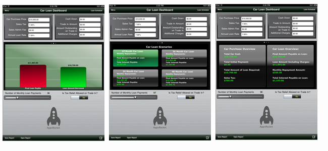Car Loan Dashboard works with all currencies within the iPad.